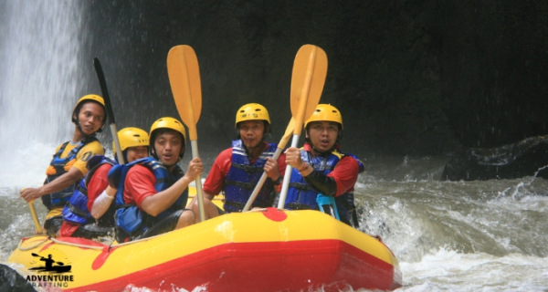 - RAFTING TRIP sesi 1 dari starting point menuju rest area Goa Kelelawar dan air terjun Bidadari. menikmati Snack lokal