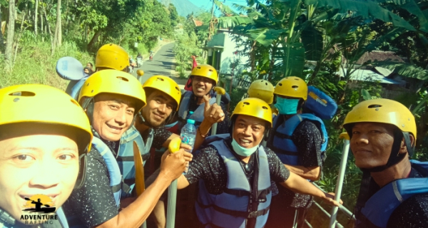 - SAFETY BRIEFING Arahan standar keamanan wisata arung jeram oleh pemandu rafting.
